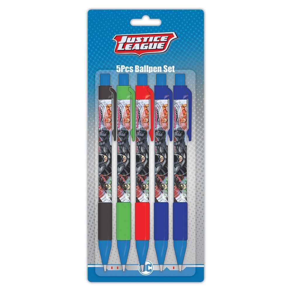 فرقة العدالة أقلام حبر جاف مجموعة من 5 الوان (أسود ، أخضر ، أحمر ، أزرق) ، قلم مصمم بمشبك ، كتابة سلسة ، مثالي لتدوين الملاحظات ، الرسم ، التخطيط