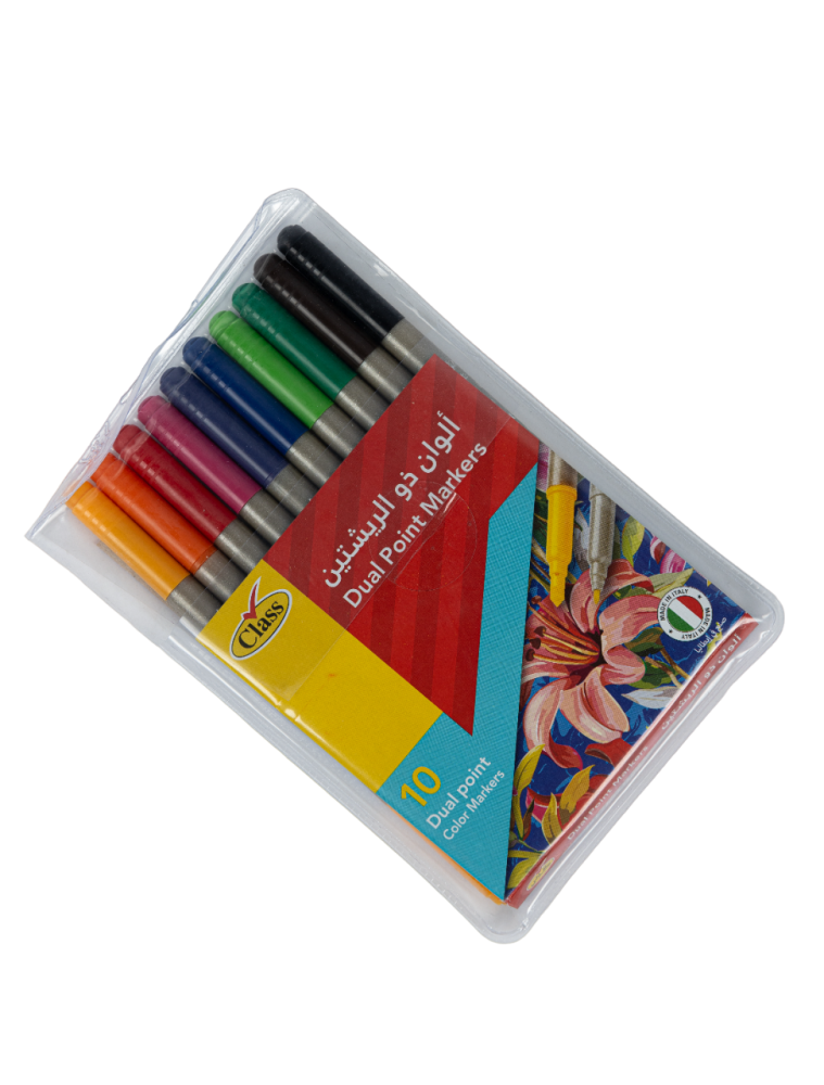 كلاس طقم الوان ذو الريشتين، مجموعة من 10، مناسبة للأعمال اليدوية، المدرسة، التلوين، والرسم