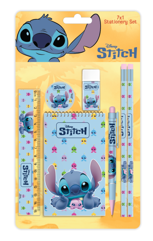 مجموعة أدوات قرطاسية ستيتش 7 قطع – مجموعة ممتعة وملونة للمدرسة والواجبات