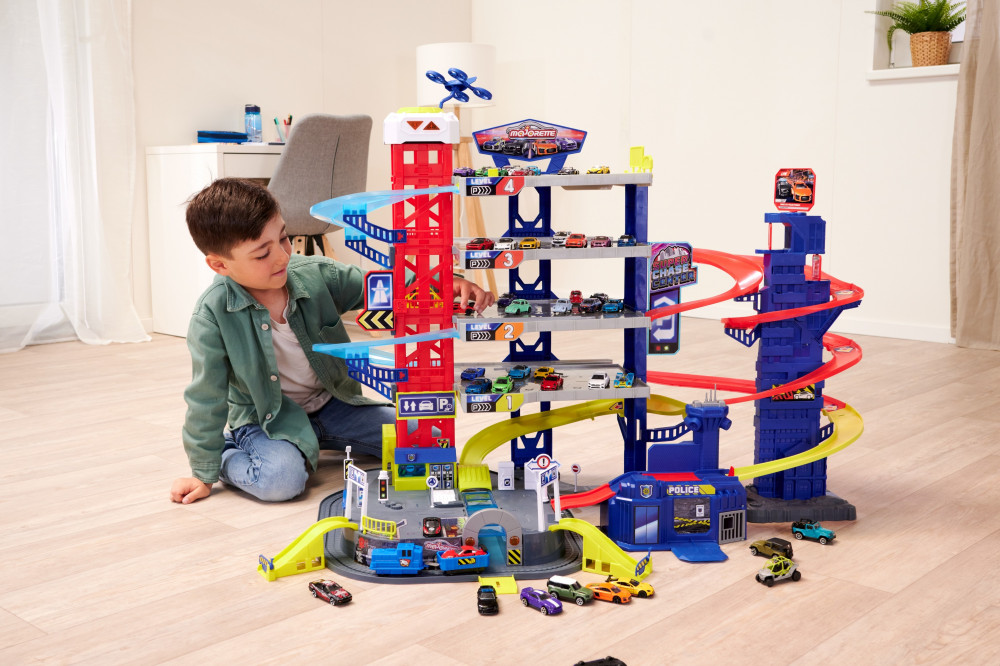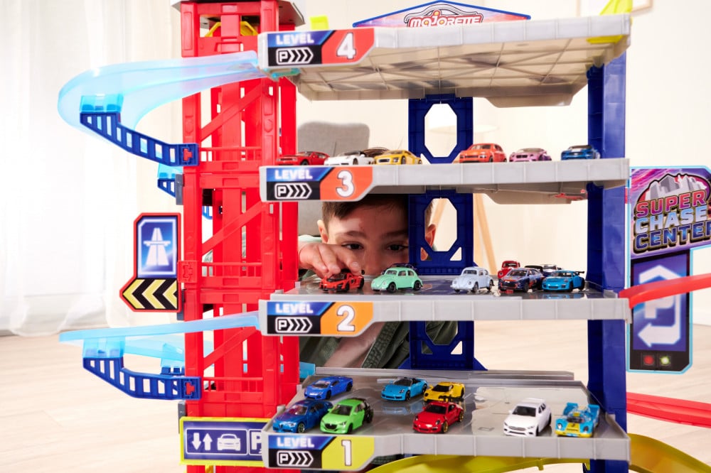 - مضمار سباق مميز: يأتي بتصميم مبتكر يوفر حركة سلسة ومثيرة للسيارات، مما يشجع الطفل على اللعب النشط والتفاعل مع اللعبة بشكل مستمر.